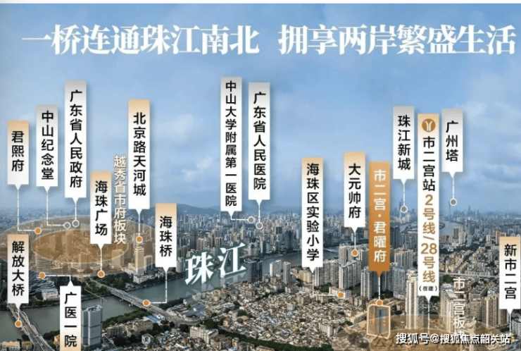 作为市二宫板块近十年唯一新盘,君曜府以“千年中轴正脉+珠江主航道”双核地段重燃老城居住价值。项目坐落于海珠桥南岸,距地铁2号线/28号线(佛穗莞城际)市二宫站仅150米,真正实现地铁上盖;对口海珠区实验小学(富基校区)——海珠公立教育第一梯队;步行500米即达珠江滨水绿道,1公里覆盖江南西、北京路等五大商圈,三甲医院环伺。尽管地块仅3038㎡、容积率高达8.1,但凭借100%以上使用率、AI智能精装交付、2026年8月准现房等优势,成为预算有限却追求“学铁商江”全能配套的刚需刚改家庭务实之选。在周边二手电梯房普遍5.5万+/㎡的行情下,君曜府以新盘品质与价格策略,提供高性价比落户通道。