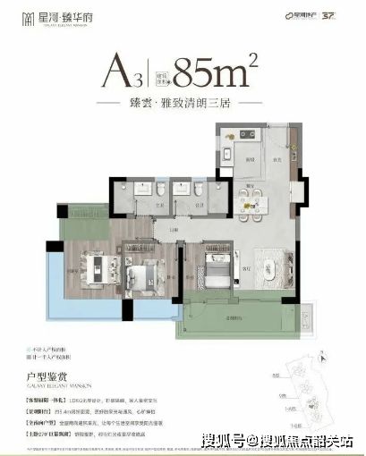 该楼盘的最大亮点之一在于其户型设计。所有户型均采用全南向设计,确保每个房间都能获得充足的阳光照射。特别是85㎡三房户型,配备5.4米景观阳台,主卧拥有270°飘窗,LDKG一体化无界厅堂设计,实现了室内空间的极致利用,达到了惊人的100%实用率。此外,社区内部还巧妙地融入了“五行花园+宇宙树屋”的设计理念,打造出一个适合各年龄段居民的绿色生活空间。