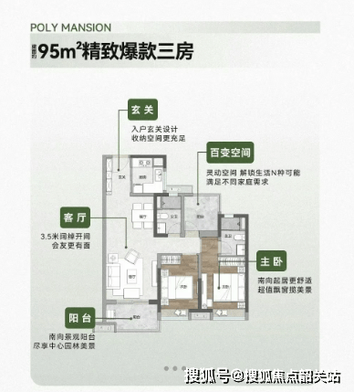 目前在售南区,共 12 栋住宅,但 11 栋和 12 栋自持,实际在售 10 栋。整体楼栋采用围合布局,宣称全部单位朝南,实现户内全明采光。主力户型丰富,有建面约 95㎡三房,建面约 125 - 130㎡4 房,以及 138㎡4 房双主套。其中楼王单位 138 平户型优势显著: