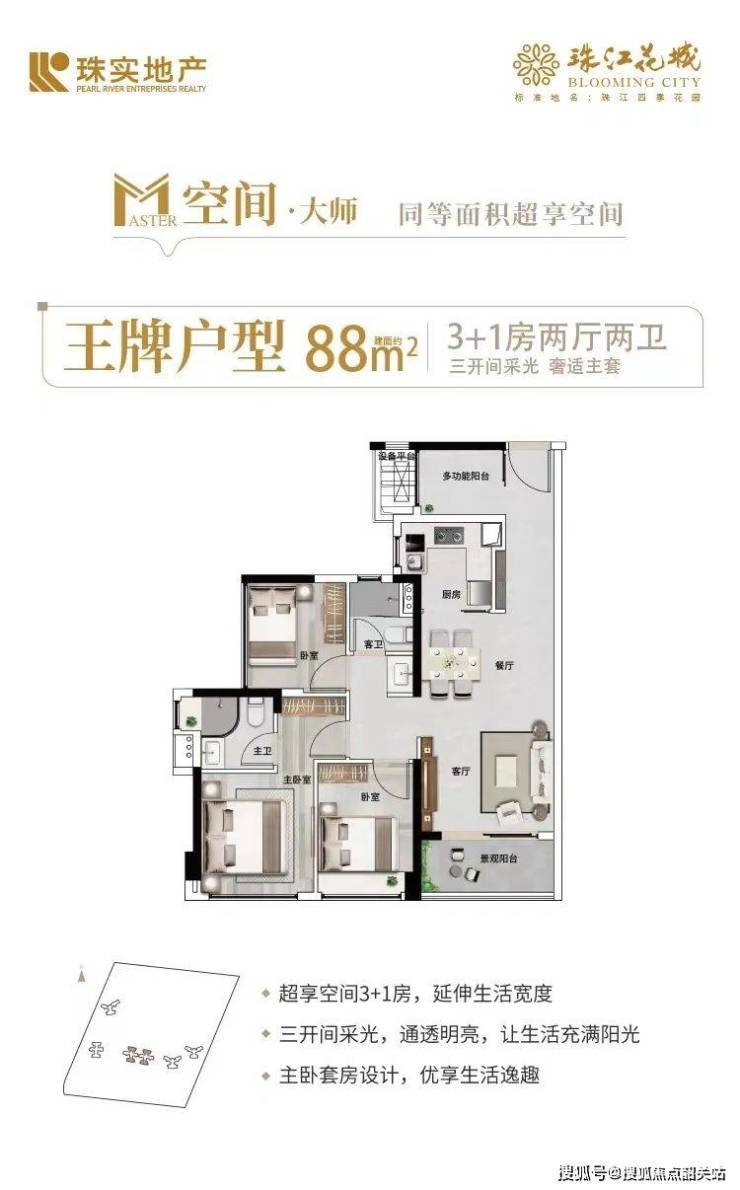 珠江花城的户型设计充分考虑到居住舒适度和空间利用率。现阶段在售的是五期的88㎡3+1房、119㎡4+1房、140㎡5房等多个户型。每个户型均采用南北通透设计,保证了充足的采光和通风,适合各类家庭的需求。特别是140㎡五房户型,带有奢华主卧和独立衣帽间,适合大家庭居住。无论是刚需家庭还是改善型需求,珠江花城都能提供适合的户型选择。