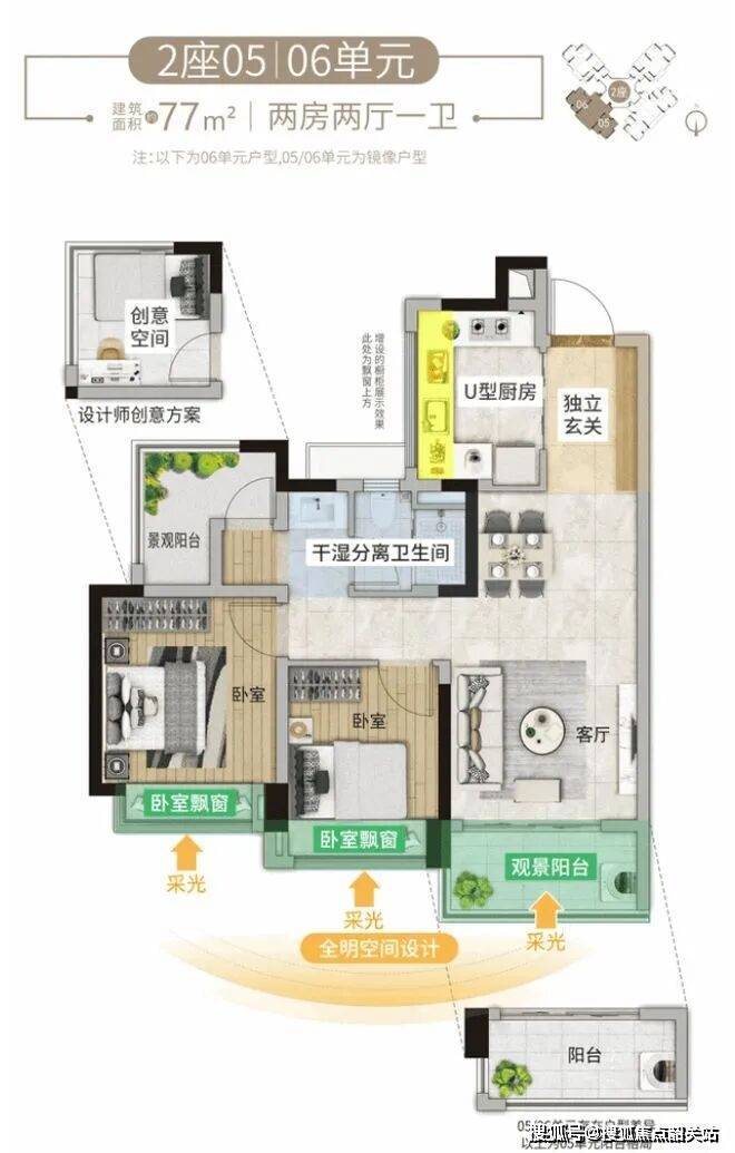 77㎡三房两卫:紧凑高效,三开间朝南,主卧带独立卫浴,适合年轻夫妻或首次置业者;