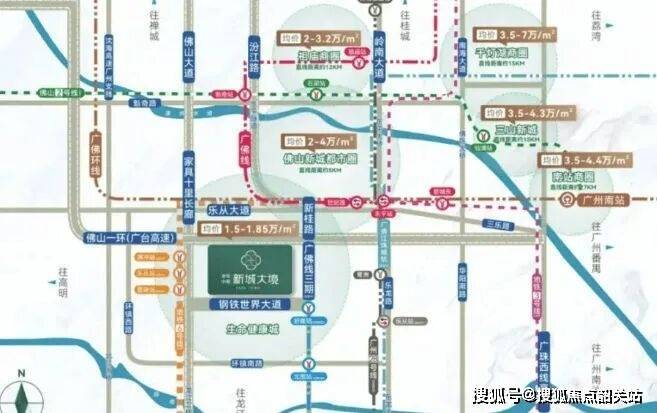 金地中南新城大境当前以自驾出行为主,依托佛山大道、岭南大道、碧桂路等主干道,可快速接入佛山新城核心区、千灯湖及广州南站方向。更重要的是,项目直线距离约600米处规划有广佛地铁三期新隆站,该线路建成后将实现与广州地铁网络的无缝衔接,显著提升跨城通勤便利性。对于在佛山新城、广州南站或顺德制造业园区工作的家庭而言,这一交通预期为日常出行提供了清晰且高效的路径支撑。