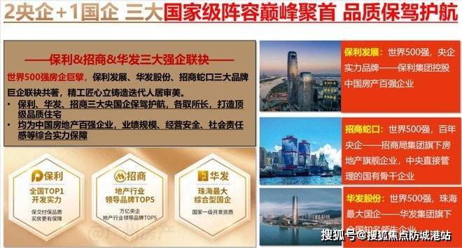 保利中央公馆由保利发展、招商蛇口、华发股份三大世界 500 强房企携手打造,汇聚了央企与国企的雄厚实力和精湛匠心 。