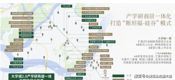 2. 立足湾区创新前沿,以“科创+教育+生态”的产城融合理念,越秀·大学城和樾府打造集居住、教育、科研于一体的活力新城,开启理想生活新篇章。项目位于国际创新城核心,处于广深科技走廊与大学城科创圈交汇,毗邻暨南大学、广州医学院等13所高校,承接科创人才居住需求,自身配建12年一贯制学校(番广实验教育集团),构建“居住-教育-科创”闭环。依托4号线地铁与金光东隧道,快速链接琶洲、万博的产业资源,中央公园与社区配套形成生活闭环,居住于此,既能享受高知人文圈层,又能承接科创产业红利,产城融合让工作与生活平衡,理想生活在大学城落地,开启兼具人文与活力的新篇章。