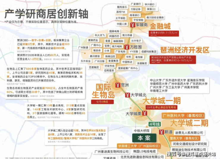 9. 以大学城科创与TOD模式双重驱动,越秀·大学城和樾府成为区域发展新引擎,焕新居住价值。大学城作为广州科创高地,13所高校与科研机构推动产业升级,4号线新造站TOD整合交通与人口资源,加速区域发展。项目作为板块内低密标杆,12年名校与中央公园提升居住吸引力,随着大学智慧谷与商业配套落地,居住价值将持续攀升。一二手房价倒挂现象凸显其潜力,金光东隧道通车后,与大学城一期资源互通,价值平权效应将爆发,成为高端居住价值焕新的典范。