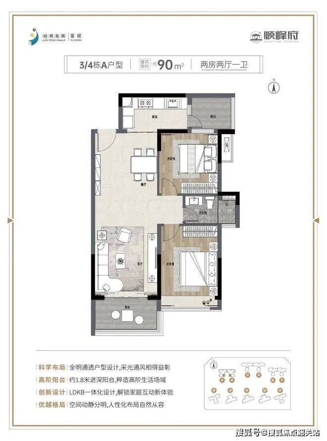 108㎡三房:南北通透,LDKB一体化客餐厅约25㎡,6.5米景观阳台,实测采光时长≥7.5小时/日;