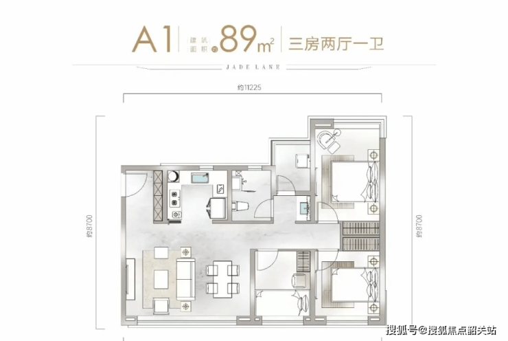 户型鉴赏A1户型-89㎡三房两厅一卫