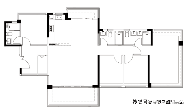 约104㎡ 4空间2卫:3.3米的层高带来了别墅般的空间感,6.1米的大阳台横跨整个南向面宽,四开间朝南的设计让阳光洒满每一个角落。无论是老人房还是儿童房,都能享受到温暖的日照。
