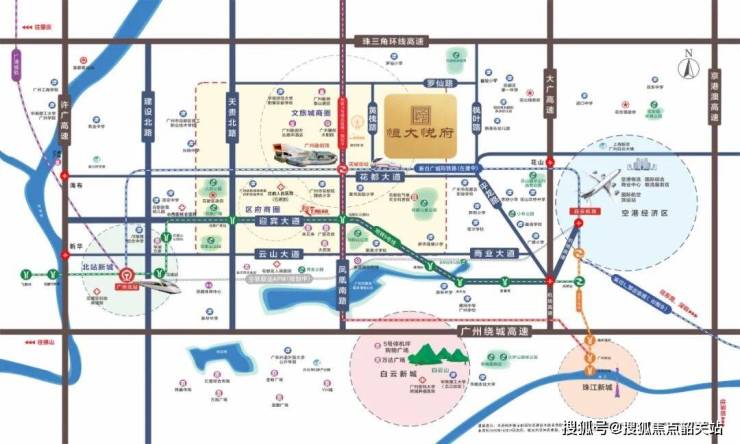 楼盘位于广州北部的花都区,地铁18号线(在建)直达珠江新城。片区正在规划打造具有商务中心功能的综合性城市公共中心,并与高铁商务区和空港商务区错位发展,建构花都的“商务金三角”。