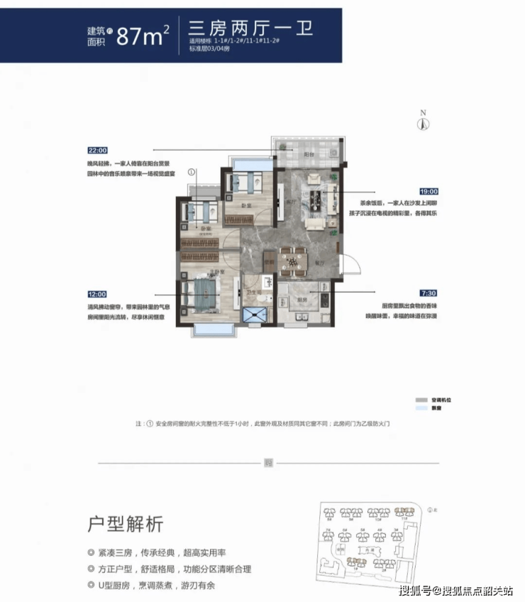 使用率高:紧凑三房,小空间大舒适。U型厨房,烹调蒸煮皆宜。