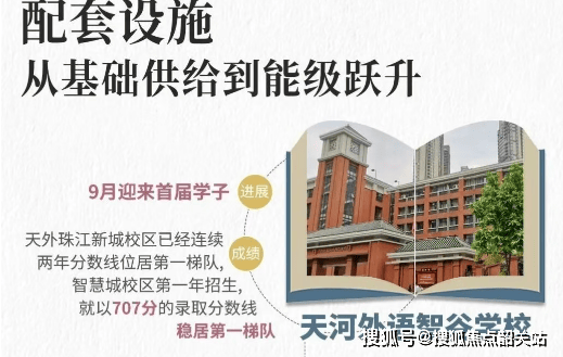 项目官宣对口天河外国语学校智谷校区,这所学校作为天河区属的第一梯队教育集团,具有很高的号召力。加上周边已有的优质教育资源,如越秀观樾配建的24班小学及缦云广州配建的九年制学校,为孩子们提供了良好的学习环境。