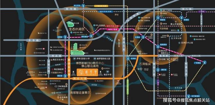 地面交通方面,紧邻南庄大道、佛山一环、沈海高速、广明高速,15分钟内通达石湾、张槎,30分钟覆盖千灯湖、祖庙商圈;