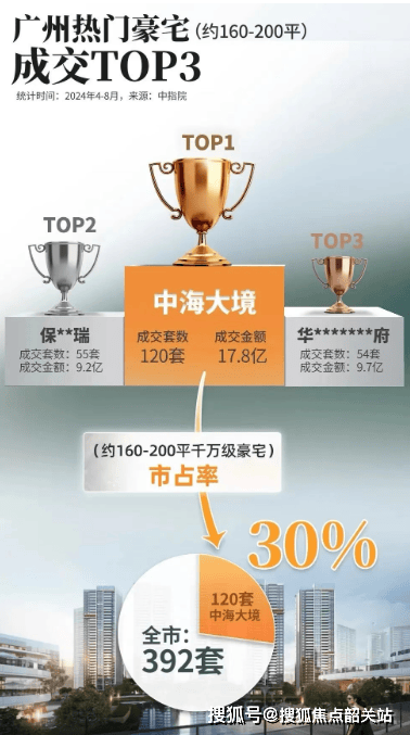 2024 年 4 月,中海大境携约 160-200㎡的纯粹大户型产品耀世登场,甫一面市便掀起市场热潮,一举斩获成交金额、销量、面积三项桂冠,登顶广州豪宅 “三冠王” 宝座。更令人惊叹的是,项目在同面积段千万级豪宅市场的市占率高达 30%,这意味着每 3 位手握千万预算的高端置业者,就有 1 位毫不犹豫地选择中海大境。这样的成绩,绝非偶然,而是项目硬核实力与市场精准需求完美契合的必然结果。