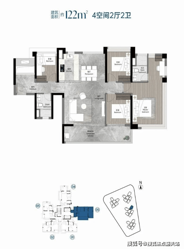 A5:项目在售户型包括建面约 86㎡三房、88㎡三房两卫、108㎡四房、122㎡四房,均为纯南向布局,实用率高达 120%。