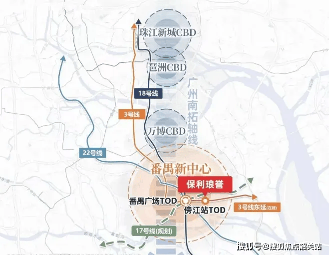 保利琅誉选址番禺区府新城核芯板块,具体位于番禺客运站北侧,龙湖金地天峯旁边,处于番禺广场TOD辐射圈核心范围,享受板块规划升级带来的多重红利。番禺广场板块作为番禺区公共服务中心及轨道交通枢纽,现状已建番禺区政府、图书馆、财政局等行政文化设施,未来将打造以交通枢纽、行政办公、文化休闲、商业商务等功能为主导的番禺未来新中心,区域发展潜力巨大。