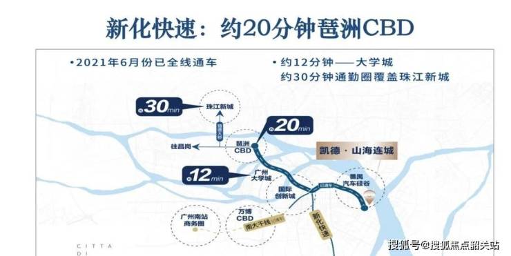 交通网络的完善是板块价值兑现的加速器。随着南大干线的全线开通,莲花湾与广州市中心的时空距离被大幅缩短。南大干线作为连接番禺东西向的交通大动脉,串联起了广州南站、万博商圈、大学城、创新湾以及琶洲会展中心等核心区域。从凯德山海连城出发,经由南大干线,仅需约30分钟即可直达琶洲,约20多分钟可达万博,通勤效率极高。对于在琶洲、万胜围、大学城等地工作的精英人群来说,这里真正实现了“半小时生活圈”的梦想。