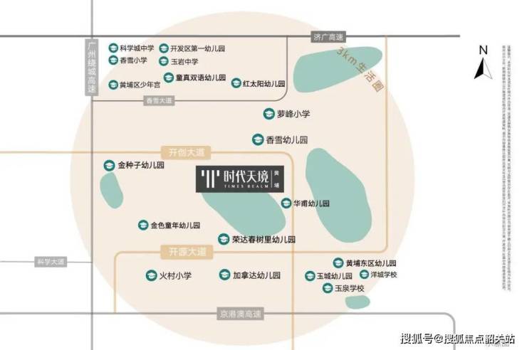 时代天境(黄埔)占地约4.5万㎡,总建面约18万㎡,由2栋高层、3栋超高层,共5栋楼组成,合计1140户,车位比1.2,产品面积户型为80㎡-108㎡三至四房,项目配套24班小学,背靠创新公园的山体资源。