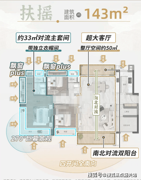 改善主力:建面约128㎡、143㎡四房,LDKB一体化厅堂,主卧带270°飘窗与独立卫浴。这种户型适合追求高品质生活的改善型家庭,宽敞的客厅、独立的卧室、舒适的卫生间,每一个细节都体现了对生活的热爱。