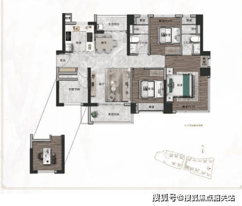 主力爆款:建面约98㎡四房两厅两卫,双阳台布局,高拓展空间,是区域内稀缺的百平内四房产品。这种户型在市场上非常受欢迎,因为它既满足了多代同堂的需求,又没有太大的经济压力。