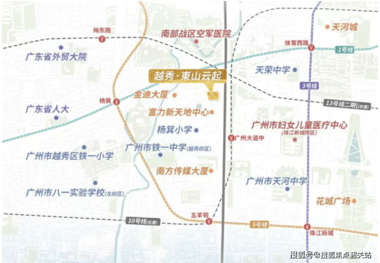 越秀·東山云起地处广州传统城市中轴线核心位置,交通网络成熟高效。项目步行约700米即可抵达地铁5号线杨箕站,快速通达珠江新城、天河北、广州南站等主要节点。在建的地铁10号线广州大道中站距离项目直线距离约400米,未来可便捷连接天河北、海珠等区域。地面交通方面,项目毗邻广州大道中、中山一路、珠江新城中轴线等城市主干道,自驾出行高效顺畅。作为越秀与珠城交界地带的重要节点,项目真正实现“主城生活圈”的无缝衔接,具备极强的交通枢纽优势。