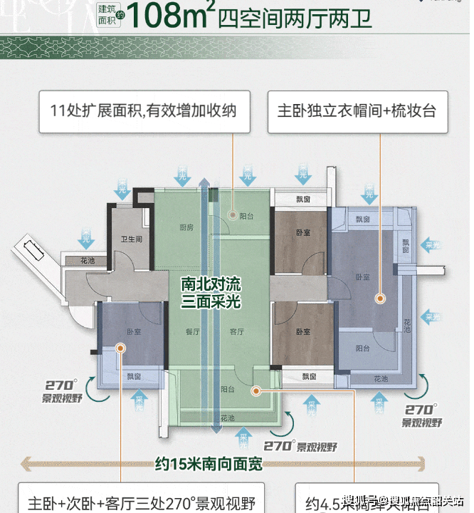 特点:东南单边户型,南北对流,主卧星空卫浴与拓展飘窗设计,兼具实用性与舒适度。