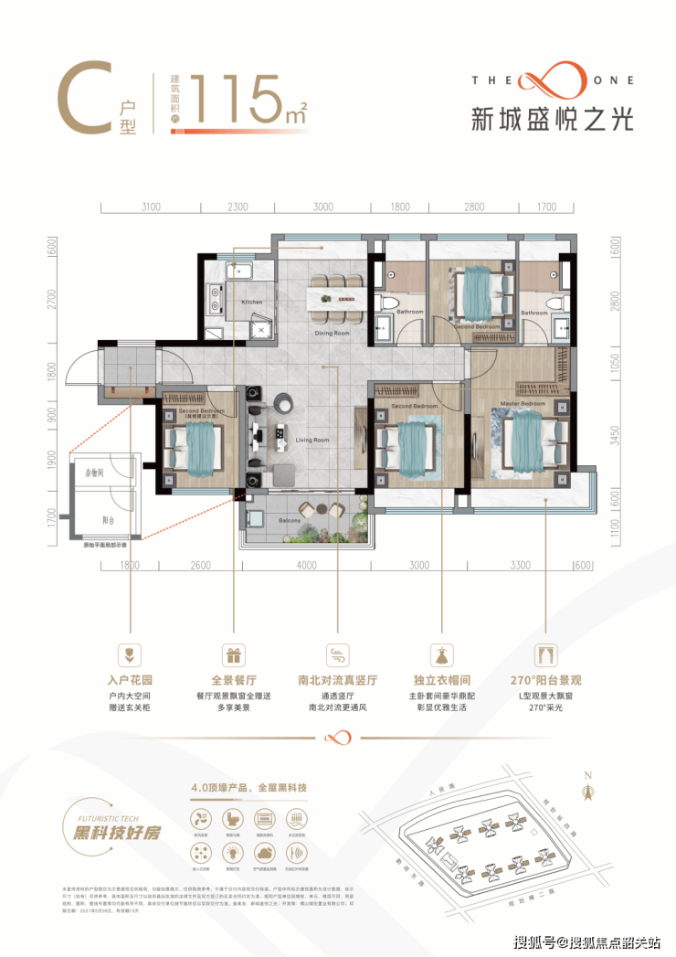 作为新城控股在广佛地区的首个TOP系作品,新城·盛悦之光采用了最新的4.0頂壕住宅系统,融合了185项领先技术,致力于打造高品质的居住体验。户型设计合理,涵盖从85㎡到115㎡的不同面积段,满足不同家庭结构的需求。
