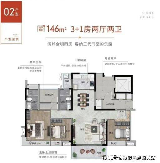 90%以上户型为纯南向板楼设计,南北通透,客厅、卧室及餐厅动线合理。主力户型88-122平方米三至四房设计,大面宽短进深,空间利用率高,部分户型配置观景阳台、步入式衣帽间,满足家庭日常生活及收纳需求。