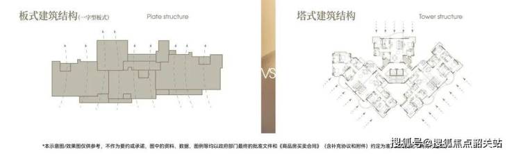 ×塔楼:混合朝向,并非户户朝南,户型间存在遮挡,容易产生对视,室内空气流线差,换气效果相对较差。