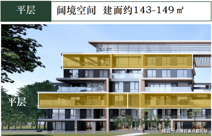 中间3F的143方平层,四房两卫的横厅,就是普通的大平层产品,但胜在居住密度低和景观不错。