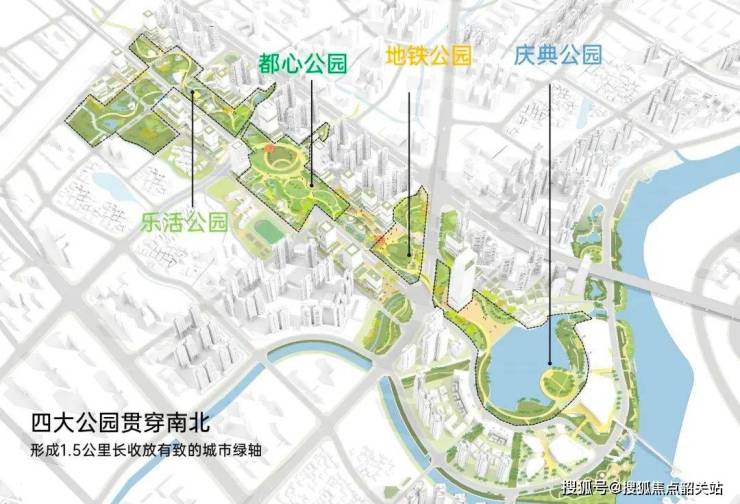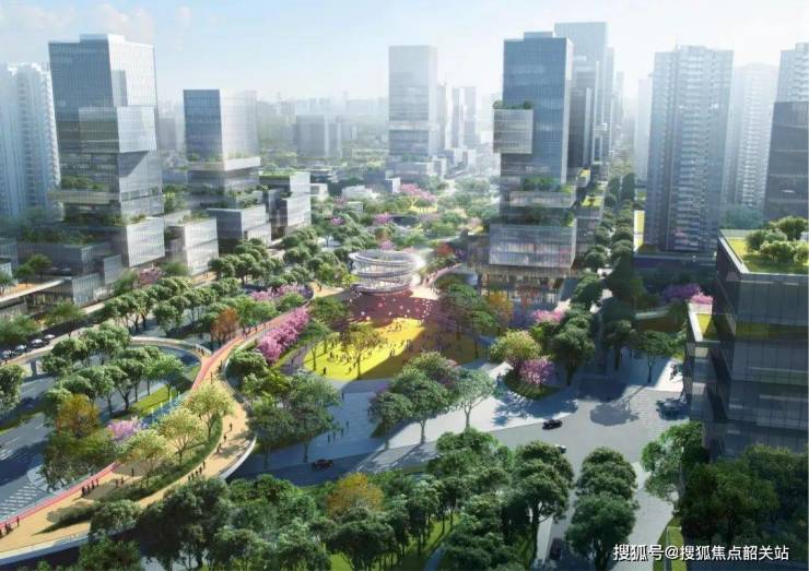 对标珠江新城的公园中轴,项目西侧规划打造约1.5km长的中央生态景观轴。