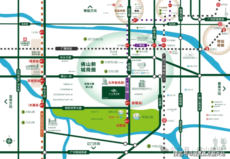 距离项目约1.2公里的佛山国际金融中心规划建设20万㎡商业综合体,未来将成为区域高端消费地标,进一步提升板块商业能级。