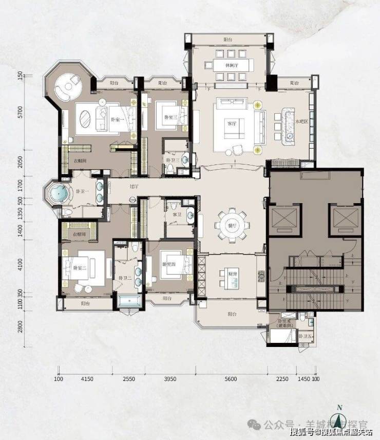 户型设计遵循“江园合一”理念,户户南北对流,坐拥270°环幕江景,约17米江景大横厅搭配超32米全景景观面,打造会客厅、茶酒厅、娱乐厅三厅社交空间,重塑家族生活场域。主力户型涵盖236-528㎡平层及1200-1600㎡空中复式,其中236㎡五房总价2800万起,500㎡六房总价6200万起,1600㎡天际复式墅境(带泳池)总价2亿起。所有户型均采用全球甄选奢石珍木,配备德法意顶奢品牌,搭载星河湾“星智家”AI智慧系统,总统级主套、独立电梯厅等设计,全面覆盖世家大族居住、社交、宴请等多元需求。