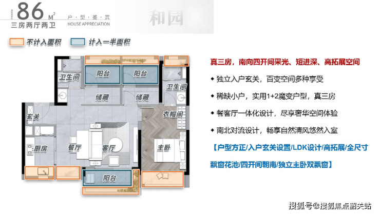 保利·花语和岸在户型设计上最引人注目的亮点,在于其对空间使用率的极致挖掘,被誉为荔湾区首个实现户型使用率超100%的新楼盘。这一数据的背后,是设计师对每一寸空间的精算与重构。以主力户型之一的86平方米三房为例,该户型采用了开间朝南的独立玄关入户设计,进门处即设置了灵活的收纳空间,可根据家庭需求调整为鞋柜、储物间或儿童车停放区。室内布局上,通过优化墙体厚度与管道井位置,将原本属于公摊的部分面积“偷”回了室内,使得实际使用面积达到了约81平方米,实用率超过95%。主卧配备了独立的衣帽间,并连接一个270度的全景阳台,这不仅扩大了视觉视野,更让采光与通风效果达到了极佳状态。南北对流的设计确保了空气的自然流通,即使在闷热的夏季,也能保持室内的清爽。