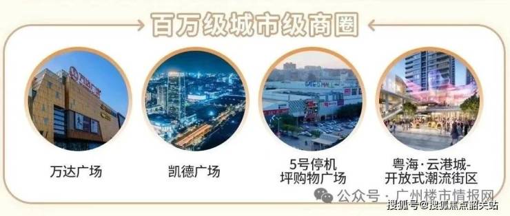 项目自身规划白云粤海天地潮流街区,由天河城集团专业运营,打造第五代高端商业产品系,汇聚全球尖奢品牌与潮流生活体验。周边凯德云尚、五号停机坪等成熟商圈环伺,一站式满足购物、餐饮、娱乐、休闲需求。同时,项目紧邻广东画院、白云国际会议中心、城市规划展览中心六大省级文化地标,兼具商业繁华与人文底蕴,实现“出则万象繁华、入则静谧私属”的顶奢生活状态。