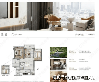 建面约76㎡户型:三房双厅设计,适合年轻家庭或首次置业者,提供静谧园景三空间。