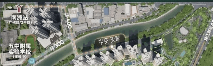 项目最大的交通亮点莫过于其距离2号线与广佛线交汇的南洲站直线距离仅约400米。