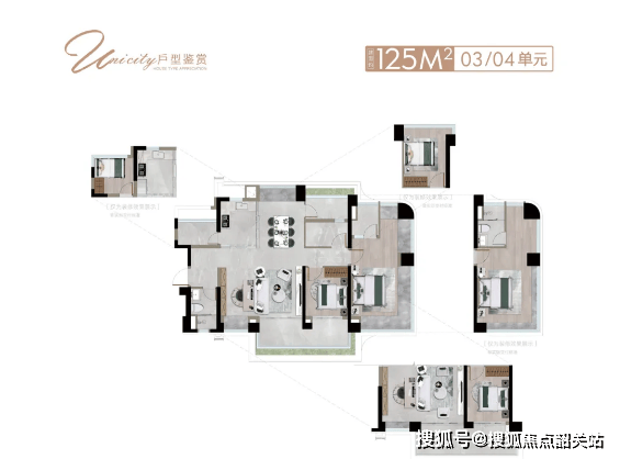 项目的户型产品采用了最新的新规设计,超高使用率,同时配备了高端的交付标准,为业主带来拎包入住的品质生活。 首先是建面约 125㎡的 2+2 灵动空间户型,这个户型拥有独立的玄关入户,玄关处设置了收纳空间,既可以满足业主的收纳需求,也打造了归家的仪式感,同时隔绝了外部的视线,提升了居住的私密性。