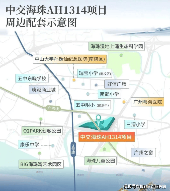 中交天翠所在的海珠区AH101314地块,地理位置优越,交通便利。距离地铁2号线和广佛线交汇的南洲站仅400米,周边还有广州绕城高速和广州大道,形成了四通八达的交通网络。项目定位为高端居住区,北瞰广州塔,南望珠江水,兼有江景、城景、园景等多重景观资源,提升了整体居住品质。