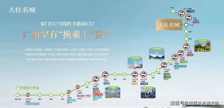 在交通配套方面,大壮名城・名门展现出无与伦比的优势,构建起立体高效的交通网络 。项目实现三地铁环绕,且全部已开通运营,这种交通配置在广州极为稀缺。步行约 800 米可达地铁 6 号线暹岗站,搭乘此线可直达黄埔、天河、越秀等核心地段;步行 900 米即达 7 号线科丰路站,该线路贯穿科学城、大学城、万博 CBD,直至广州南站,串联起城市多个重要节点;虽距离 6/21 号线苏元站约 1.8 公里,但 21 号线直通天河金融城、智慧城,极大拓展了出行半径。