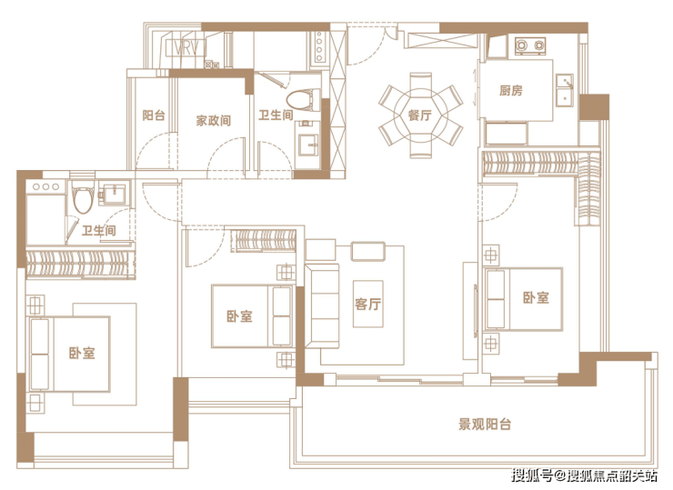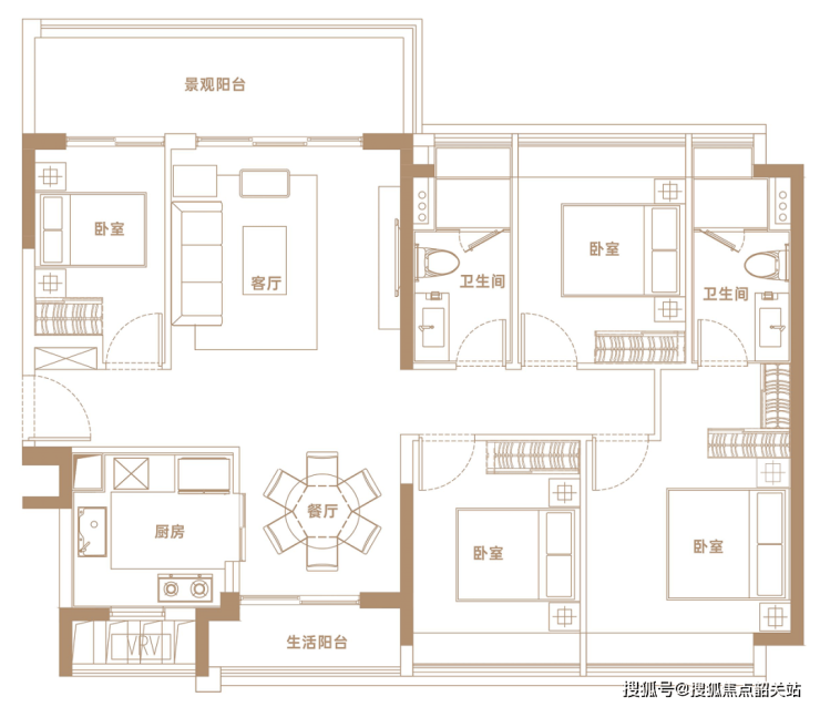 ✨【102㎡户型】南向纯四房,视野开阔,可南向俯瞰地块三中央园林景观,三开间朝南四房设计,舒居四房。