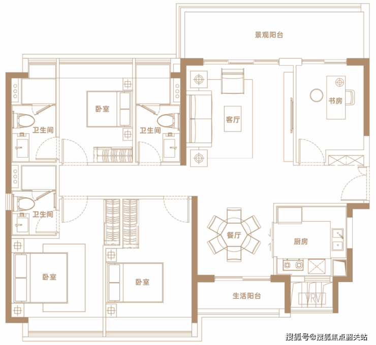 ✨【141㎡户型】南北对流双阳台四开间朝南,约1.8m*6.6m瞰江阳台,客餐厅无梁一体化,享双主卧套间宽阔私密空间。