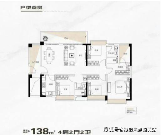 106-138㎡四房:横厅+双阳台,主卧套房配置,适合多代同住或改善升级。