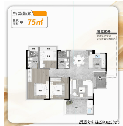 【户型设计:75-108㎡新规全南向三至四房】