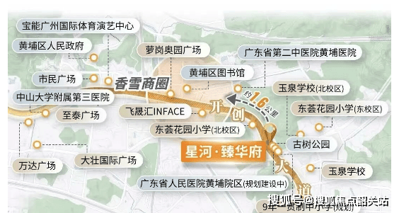 星河臻华府位于广州市黄埔区开创大道与开源大道交汇处,由星河控股集团开发。项目占地面积约16万平方米,建筑面积达66万平方米,容积率为4.4,绿化率达到了31%,规划户数为2800户,车位比为1:1.25。作为科学城核心区域的大型社区,星河臻华府不仅注重居住环境的优化,还强调配套设施的完善和生活品质的提升。