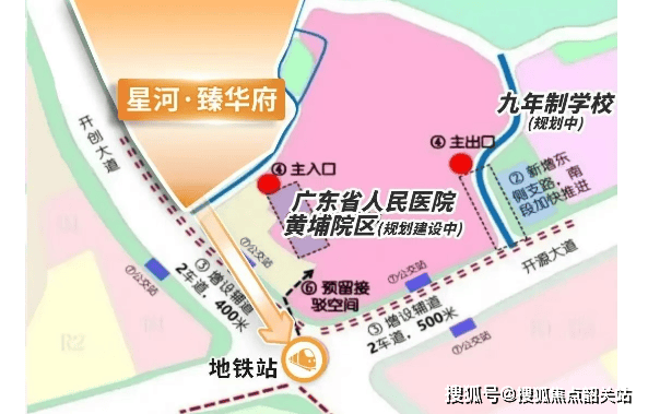 尽管星河臻华府距离最近的地铁站有一定距离(大约2公里),但未来地铁6号线东延段将在附近设站,这将极大地改善居民的出行条件。目前,公共交通主要依赖于公交车接驳。项目周边的道路网络发达,包括广深高速萝岗立交、京港澳高速等,便于自驾出行。此外,地铁口与广东省人民医院黄埔分院的距离也非常近,方便居民就医。