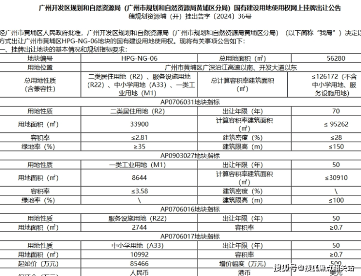2024年12月2日,黄埔区广深沿江高速以南、开发大道以东HPG-NG-06地块,由中交城投、广州峻森投资以底价成功竞得,该地块起拍价8.5亿元,总建面达12.6万平方米。根据广州市住建局备案平台公示数据,剔除3.09万平方米回迁物业和5149平方米配建后,该地块折合楼面价仅9482元/平方米,这样的楼面价在黄埔核心板块来看,有着极强的性价比优势,也为项目后续打造高性价比产品奠定了坚实基础。
