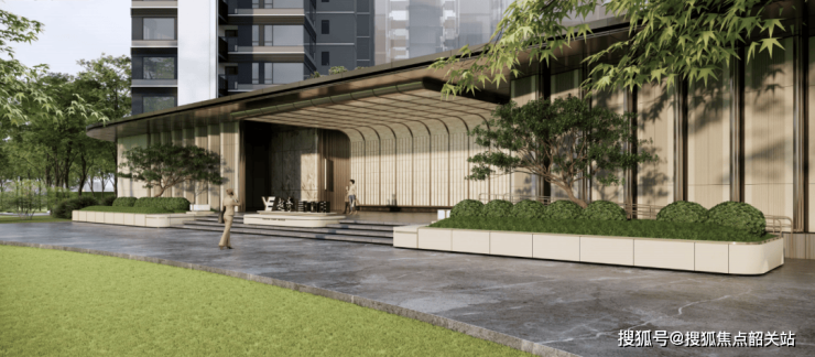 社区主入口采用了48米宽的门楼界面,顶奢高度达到5.7米,这是佛山越秀·星汇灯湖在归家仪式感上给出的具体答案。建筑团队并未止步于门楼的宏大尺度,而是在材质选择上极尽考究,贝金米黄大理石与潘多拉奢石的拼接使用,奠定了整个社区沉稳而不失质感的基调。穿过大门,迎面而来的是125米宽、面积达3800平方米的鲜氧草坪,这片开阔的绿地不仅起到了视觉缓冲的作用,更成为了居民日常散步、孩童奔跑的天然场地。在单元入户的设计上,项目定制了约4.3米高的入户景墙,并铺设约3米宽的专属入户铺装,多种大理石的组合运用,将公共区域的品质感延伸至每一个单元的私属领域。这种“给大树造底座”的园林理念,通过米白色玉石透光石与爱马仕灰大理石的搭配,为社区内的特色乔木打造了独特的展示台,使得归家动线不仅仅是空间的转换,更是一场穿越风景的旅程。每一处石材的纹理、每一棵树木的位置,都经过精心考量,旨在为居民提供一种被尊重、被呵护的居住体验。