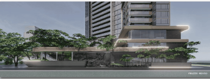 《琶洲樾|华樾》致力于为居民提供一个高品质的生活环境。项目架空了四层楼来用作会所,形成了超过10米的高度差,不仅提升了首层住户的视野,也增加了景观层次感和私密性。这里还将打造一座名为“船舷花园”的立体都市秘境,配备健身房、瑜伽室等功能空间,让住户在繁忙的都市生活中找到一片宁静之地。