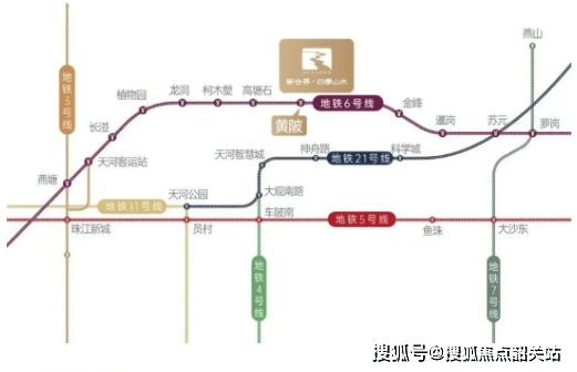 通过换乘,可快速接驳21号线(快线)、7号线、14号线,覆盖科学城、知识城、万博、大学城等就业高地。