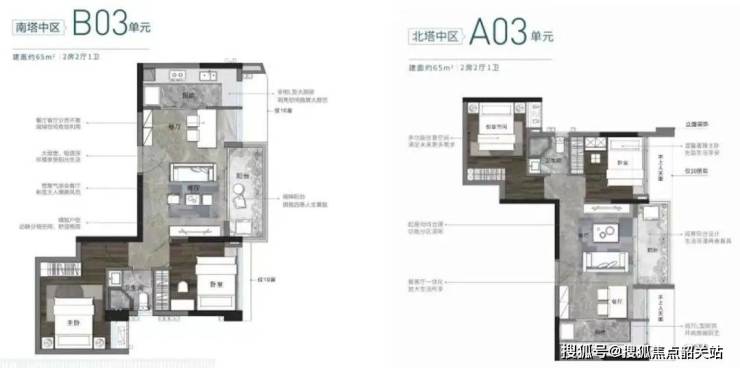3-17层:两房和三房户型,每层6户,配备2部电梯